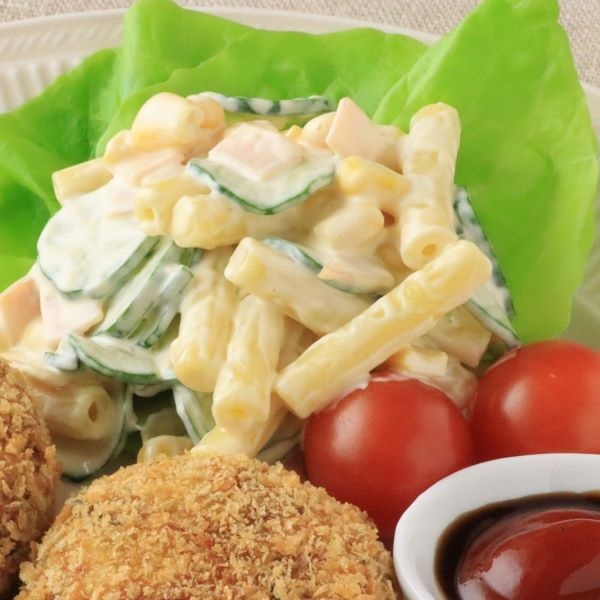 外はサクッと、中はホクホクに仕上げたコロッケ。さらにマカロニサラダと野菜の旨味溢れる沢煮椀が揃えば、我が家の「定番メニュー」におススメです。