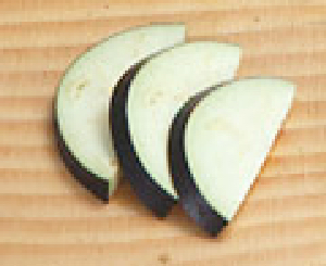 輪切りを半分にした形。縦に2つに切ってから輪切りにします。