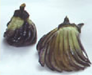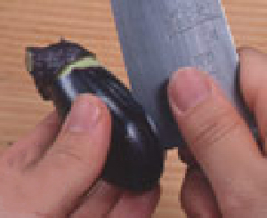 ガクをとり、縦に深い切り込みを入れます。